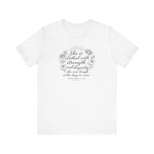Proverbs 31:25 Strength and Dignity Women’s T-Shirt