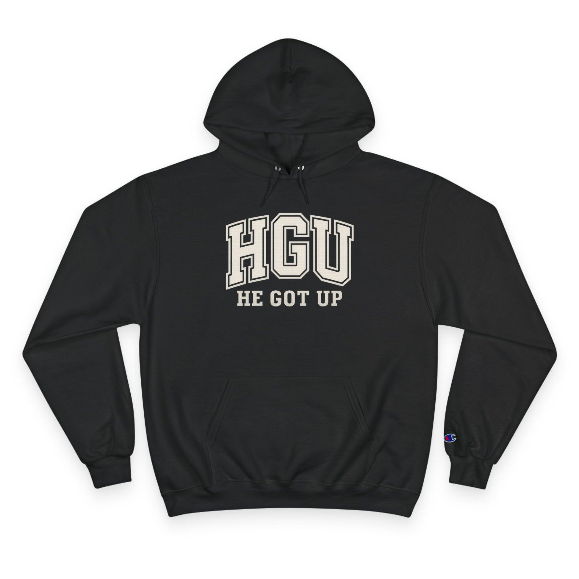 Make a bold statement of faith with the HGU “He Got Up” Champion Hoodie — a perfect blend of premium comfort and Gospel-centered purpose. This heavyweight unisex hoodie features a collegiate-style “HGU” design with the words “He Got Up” underneath, serving as a powerful reminder of the resurrection and the victory we have in Christ. Crafted from a durable cotton-poly blend, it’s soft on the inside and structured on the outside, making it ideal for everyday wear, campus life, church gatherings, outreach events, or simply staying warm in cooler weather. The iconic Champion “C” logo on the sleeve adds an athletic, vintage edge, while the kangaroo pocket and adjustable hood bring functional comfort to your daily routine. Whether you’re layering up or stepping out to share your faith, this hoodie keeps truth front and center — because Jesus didn’t stay in the grave, and neither should the message.