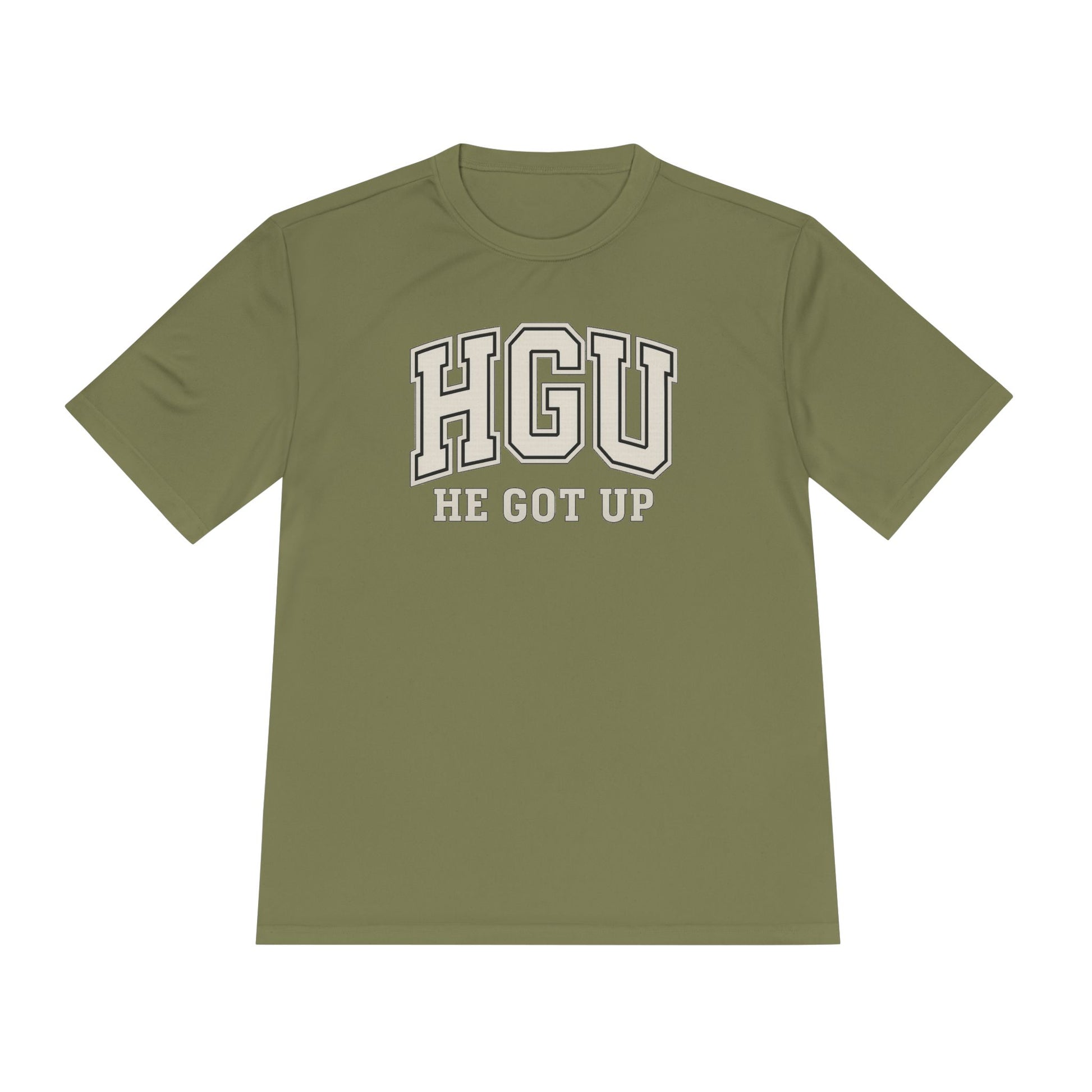 Train in comfort and share your faith with the HGU He Got Up performance tee. This unisex moisture wicking shirt pulls sweat from the skin to keep you cool and dry through workouts, runs, and long days on the move. The lightweight, quick-dry fabric feels smooth and breathable, while the athletic cut gives you easy range of motion.