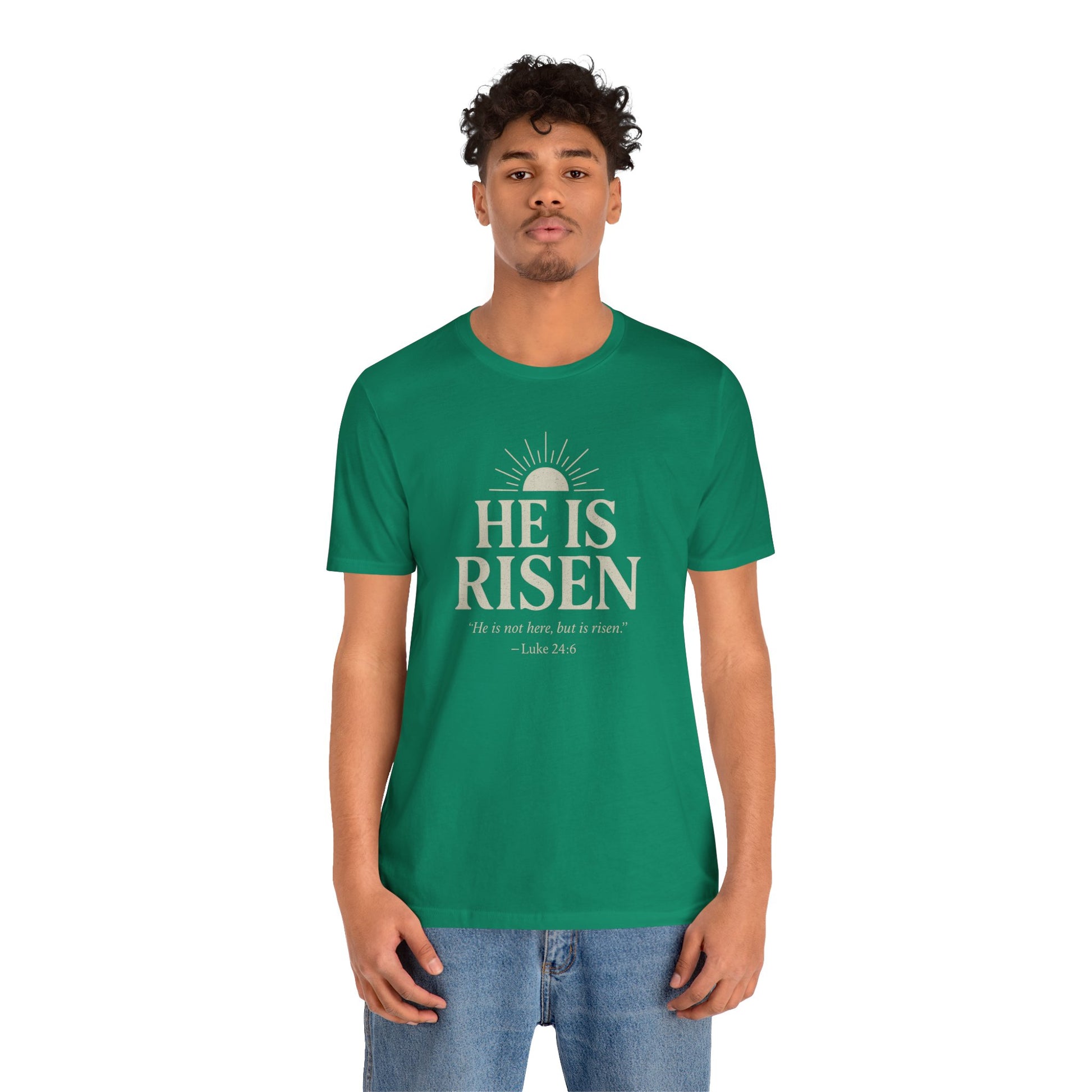 He Is Risen Christian T-Shirt - Luke 24:6 Bible Verse Faith Tee