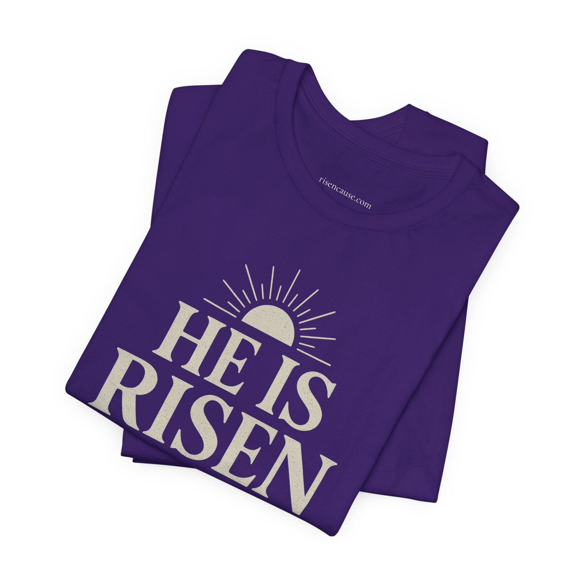 The minimalist sunrise design highlights the empty tomb and proclaims the risen Savior without needing to say a word. Whether you're sharing the gospel or simply standing firm in your faith, this shirt is a timeless statement of victory.