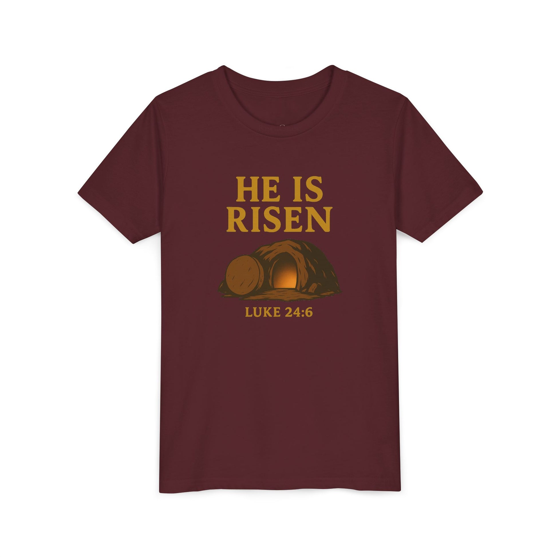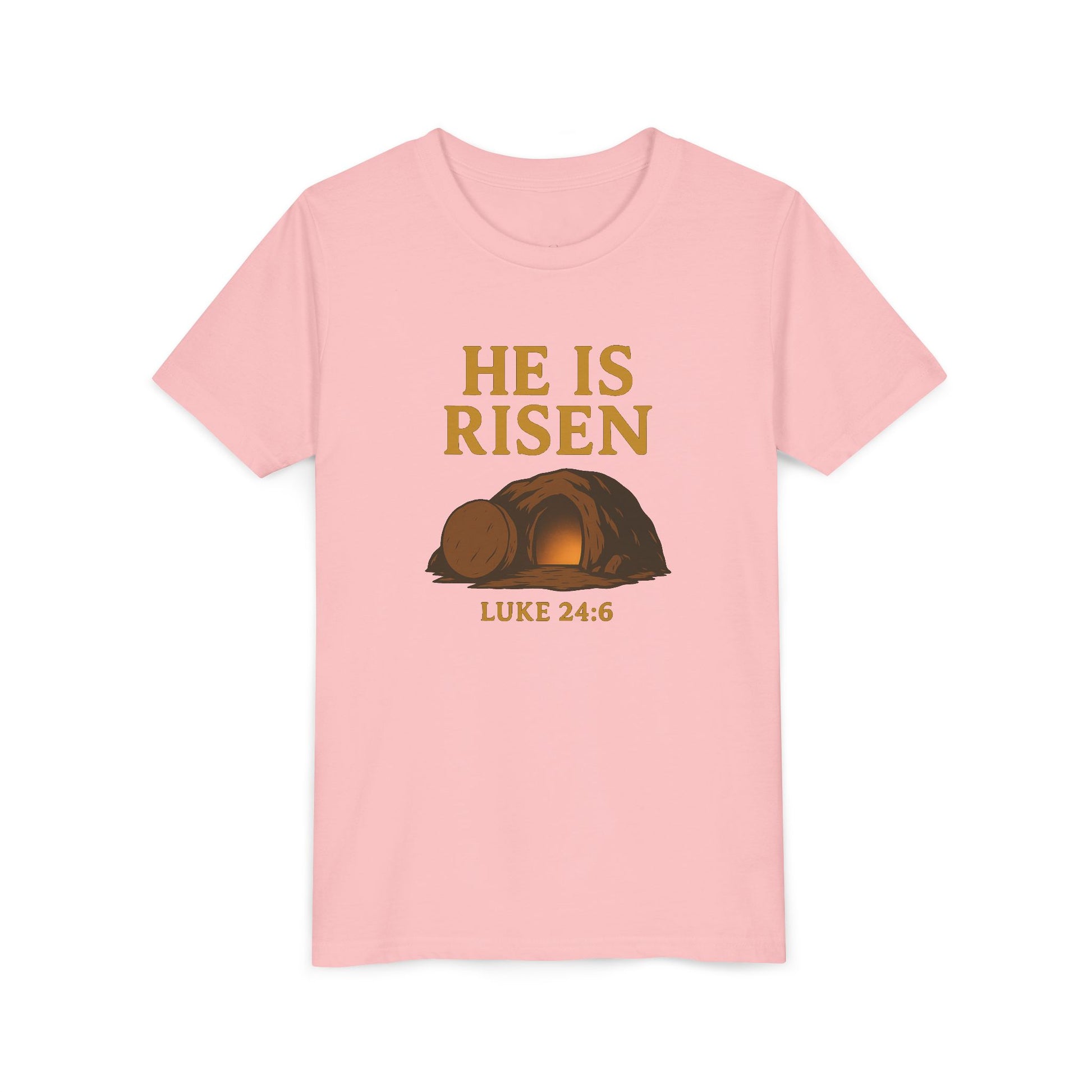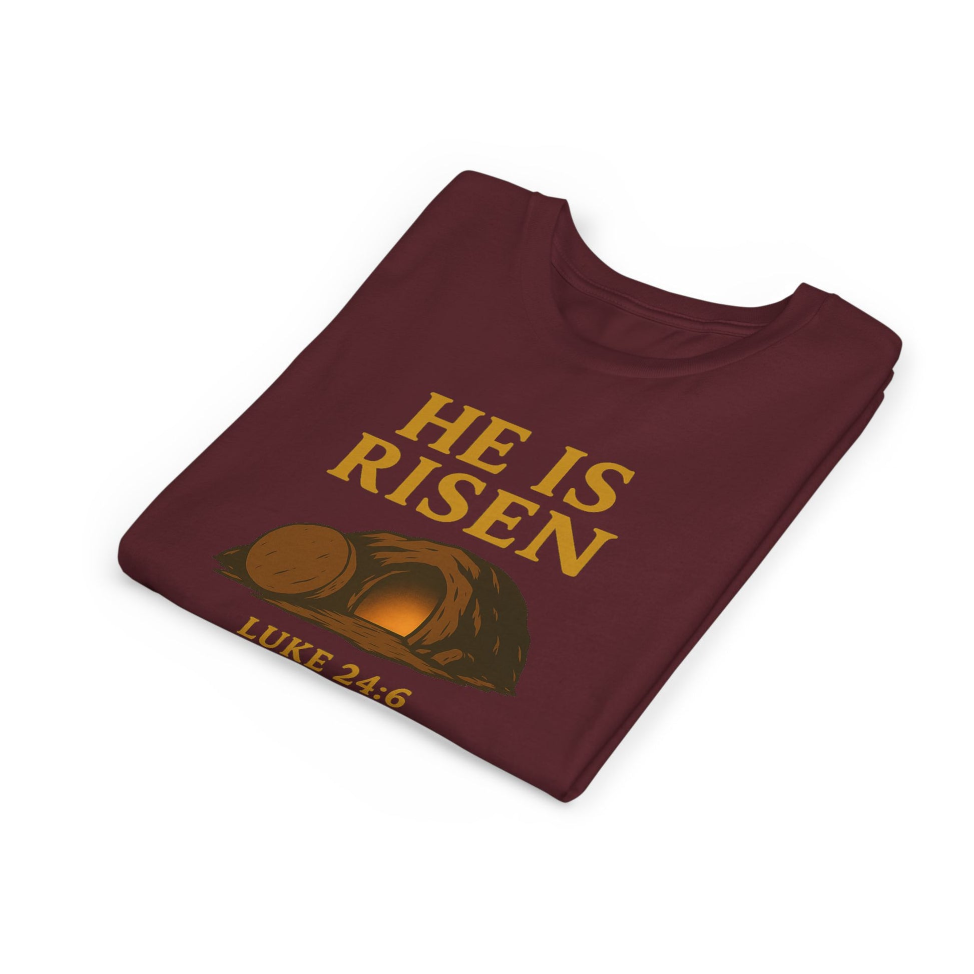 He is Risen Kids T-Shirt - Luke 24:6 - Empty Tomb Graphic